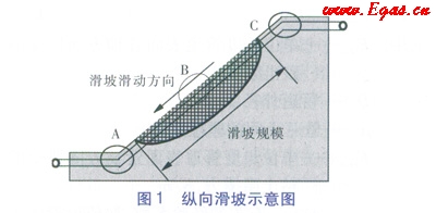 該工況下管道沿山坡方向敷設(shè),管道走向與滑坡體滑動方向一致(見圖l),滑坡體滑動時管道受下滑坡體軸向摩擦作用力明顯,另外滑坡體到達底部時受空間限制會發(fā)生向上隆起的現(xiàn)象,而在滑坡區(qū)域之外,即A、C點以外區(qū)域,可以近似認為管道兩端受到位移的約束。