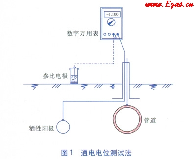 城鎮(zhèn)燃氣管道多為埋地敷設,由于土壤中含有水分、空氣、酸、堿、水溶性礦物鹽以及微生物,這些因素都會使金屬管道發(fā)生腐蝕。金屬腐蝕直接和間接造成了巨大的經濟損失,因此,必須采取有效的防腐措施,實踐證明控制管道腐蝕的主要方法是采用防腐層和陰極保護。對金屬管道的陰極保護進行測試和評價,可以及時發(fā)現管道腐蝕和安全隱患,最大程度降低經濟損失。采用犧牲陽極和3PE防腐層聯合保護的次高壓燃氣管道,通常采用通電電位測試法和斷電電位測試法進行陰極保護測試。