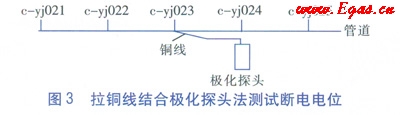 a.斷掉c-yj024測試樁的兩組犧牲陽極,等待管道完全去極化,即去除犧牲陽極對c-yj024測試樁處管道的影響,使c-yj024測試樁相當于管道任意點的直接測試樁。
