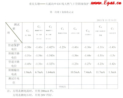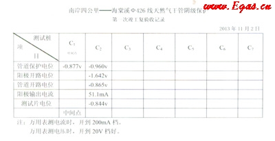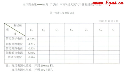 ④陽(yáng)極輸出電流很弱或?yàn)榱銜r(shí),即達(dá)不到管道最小保護(hù)電流密度應(yīng)及時(shí)更換陽(yáng)極包中犧牲陽(yáng)極棒(片)等結(jié)論。