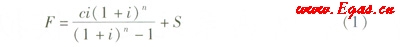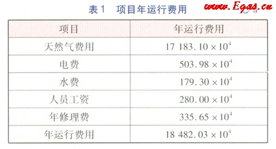 天然氣是一種清潔、優(yōu)質(zhì)、使用方便的能源。與燃煤鍋爐房相比,燃?xì)忮仩t房可省去脫硫、除塵、上煤、除渣等設(shè)備,無(wú)需煤、渣堆場(chǎng),節(jié)省用地,運(yùn)行管理較簡(jiǎn)單。該項(xiàng)目供熱面積為612×104m2,鍋爐熱效率取0.95,天然氣的低熱值為35.16MJ/m3,天然氣額定耗量為36400m3/h。天然氣價(jià)格按1.65元/m3計(jì)算,電價(jià)按0.59元/(kW·h)計(jì)算,水價(jià)按5.5元/t計(jì)算,人員工資按4×104元(人·a)計(jì)算,年維修費(fèi)按設(shè)備造價(jià)的1.8%計(jì)算。項(xiàng)目年運(yùn)行費(fèi)用見表1。由表1可知,項(xiàng)目的年運(yùn)行費(fèi)用為18482.03×104元/a。項(xiàng)目造價(jià)為25140.38×104元,使用壽命為20a,年收益率為5%。采用費(fèi)用年值法對(duì)項(xiàng)目進(jìn)行經(jīng)濟(jì)性分析,費(fèi)用年值F的計(jì)算式為: