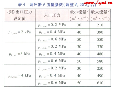 通過(guò)表4與表2對(duì)應(yīng)的流量參數(shù)對(duì)比可知,在不改變調(diào)壓器的材料、結(jié)構(gòu)的條件下,通過(guò)降低穩(wěn)壓精度等級(jí)和(或)關(guān)閉壓力等級(jí),可以在一定程度上拓寬調(diào)壓器的適用流量范圍。但是,流量范圍的拓寬程度十分有限,并不能滿足任意的流量范圍要求。同時(shí),新的流量參數(shù)不可以任意設(shè)定,需要通過(guò)試驗(yàn)和作圖相結(jié)合的方法來(lái)確定。
