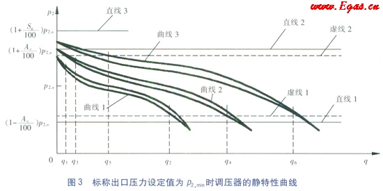 ③調(diào)壓器靜特性的優(yōu)劣需要結(jié)合調(diào)壓器的進(jìn)出口壓力范圍、流量范圍、穩(wěn)壓精度等級(jí)、關(guān)閉壓力等級(jí)、關(guān)閉壓力區(qū)等級(jí)和靜特性曲線族的關(guān)閉壓力區(qū)等級(jí)等參數(shù)進(jìn)行綜合分析。