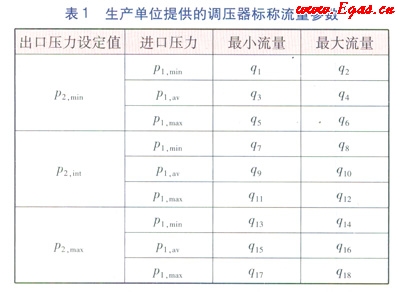 生產(chǎn)單位提供的調(diào)壓器的標(biāo)稱流量參數(shù)見(jiàn)表1。表1中的p2,int為調(diào)壓器的標(biāo)稱中間出口壓力設(shè)定值,p1,av為調(diào)壓器的標(biāo)稱平均進(jìn)口壓力值。