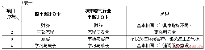 綜合而言,本文中燃?xì)馄髽I(yè)的四大構(gòu)面根植于平衡計(jì)分卡的四大構(gòu)面,但與原始的平衡計(jì)分卡四大構(gòu)面略有差異,更多地體現(xiàn)城市燃?xì)庑袠I(yè)自身的特色,對(duì)比如下表: