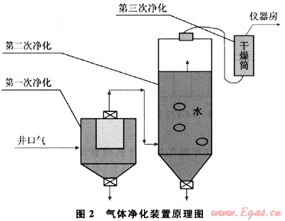 根據(jù)井口高壓氣體自行向前運(yùn)動(dòng),設(shè)計(jì)了不同的凈化方式,氣體經(jīng)過(guò)“三重凈化”后(圖2),進(jìn)入綜合錄井色譜儀,達(dá)到了連續(xù)、干燥、無(wú)塵的目的,提高了氣測(cè)分析的準(zhǔn)確度。