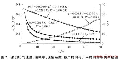 2) 利用采(油)氣速度、遞減率、現(xiàn)值系數(shù)、穩(wěn)產(chǎn)時間與總生產(chǎn)時間的相關(guān)關(guān)系,可計(jì)算不同條件下的儲量起算標(biāo)準(zhǔn)。