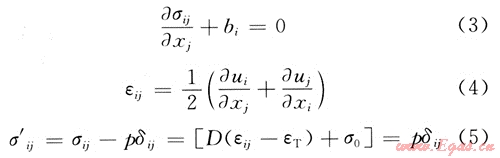 與常規(guī)應力應變方程相比,式(5)增加了熱應變項、初始地應力項和流體壓力項,以表征3個物理場之間的耦合作用。