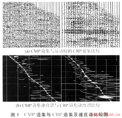 將沿層反演出的疊加速度進行傾角校正轉(zhuǎn)換成均方根速度,利用CRP道集反動校的方法進行速度優(yōu)化(圖1)。從對比圖中可以看出,由于疊前時間偏移消除了地層傾角和反射點彌散的影響,得到的CRP反映同一反射點的信息,此時時距曲線更接近雙曲線理論假設(shè),分析的均方根速度更準確、更符合地質(zhì)變化規(guī)律。