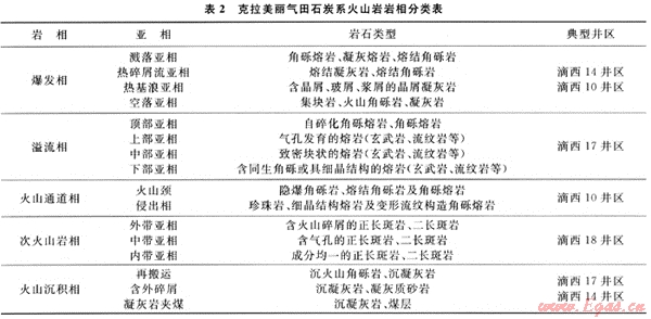 克拉美麗氣田石炭系屬于以中心式為主、裂隙式為輔的火山噴發(fā)模式,共發(fā)育3大類(lèi)11種亞類(lèi)32種巖石類(lèi)型,包括爆發(fā)相的火山碎屑熔巖、熔結(jié)火山碎屑巖、火山碎屑巖,溢流相的玄武巖、安山巖、流紋巖,次火山巖相的正長(zhǎng)斑巖、二長(zhǎng)斑巖等?;鹕絿姲l(fā)能量較強(qiáng),內(nèi)部火山機(jī)構(gòu)正向隆起特征清晰。