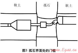 有人認為增加洗孔次數(shù)可避免卡管,實際上在堅硬孤石與松軟土壤交錯分布的情況下,由于松軟土壤被反復沖刷,使得孔徑遠大于堅硬孤石上的孔徑,從而在兩者交界處形成門檻。洗孔次數(shù)越多,門檻越明顯,管道回拖時發(fā)生卡管的風險越大(圖3)。
