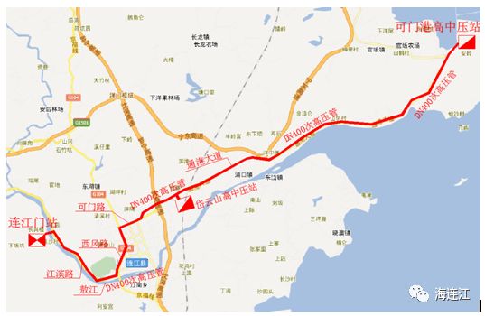 規(guī)劃的次高壓管道路由為:天然氣橫槎-連沙門站(連江門站)——敖江北岸江濱路北——西鳳路閘道——西鳳路——可門路——通港大道——可門高中壓站,全長(zhǎng)約33.2km。