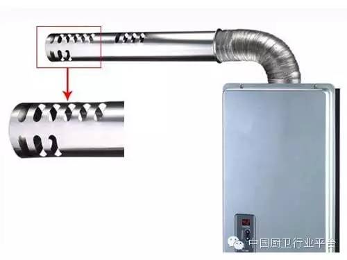 這種排煙管的前部是封死的,周圍設(shè)有小孔,用于排出煙氣。當(dāng)冷空氣吹入排煙管時(shí),從一側(cè)小孔進(jìn)入就立即從另一側(cè)小孔排出,由于前部封死,冷空氣不會(huì)灌入到熱水器里面,能夠有效防止凍裂。