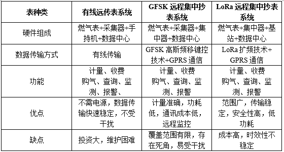 我們將三種遠傳燃氣表的性能進行了對比,如表2所示。
