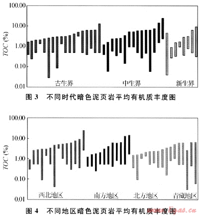 古生界、中生界分布范圍較廣并大致以天山為中心形成南、北“蹺蹺板”式沉積特點(diǎn),即早古生代時(shí)以天山以南的塔里木地塊為沉降沉積中心,形成較大面積分布的海相頁巖。晚古生代時(shí)則以天山以北的準(zhǔn)噶爾地塊為中心形成頁巖沉積。晚二疊紀(jì)末中生代以來,全區(qū)進(jìn)入陸相沉積環(huán)境,“蹺蹺板”運(yùn)動(dòng)基本結(jié)束,總體上表現(xiàn)出總有機(jī)碳含量向上逐漸增加的趨勢(shì)。