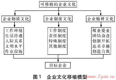 事實(shí)證明,買到技術(shù)、產(chǎn)品和服務(wù)易如反掌,而要重復(fù)一個(gè)企業(yè)的文化和經(jīng)營方式則極為困難。因此,燃?xì)馄髽I(yè)在合資、兼并收購其他企業(yè)后,要成功移植企業(yè)的優(yōu)質(zhì)文化,需要經(jīng)歷一個(gè)比較艱難的過程。結(jié)合企業(yè)文化的內(nèi)容,企業(yè)文化擴(kuò)張方式應(yīng)該是建立在企業(yè)精神的基礎(chǔ)上,以完整的管理制度為依托,以鮮明的企業(yè)形象為載體,符合目標(biāo)消費(fèi)群的精神和物質(zhì)需要[5]。企業(yè)文化移植模型見圖1。