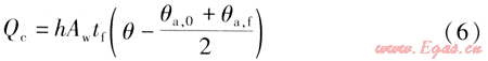 根據(jù)以上假設(shè),隨著風機盤管的工作,室內(nèi)溫度不斷降低,室內(nèi)空氣與墻內(nèi)壁面間的對流傳熱量Qc的計算式為: