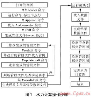 利用GPA軟件進行水力計算,操作人員僅需熟悉AutoCAD與Excel的操作命令即可,簡便易懂。利用GPA軟件進行水力計算的詳細(xì)操作步驟見圖1。