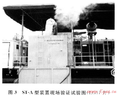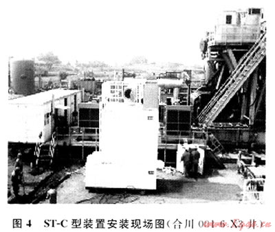 圖3是ST-A型裝置(單機(jī)配帶)在LG17井現(xiàn)場對比試驗(yàn)運(yùn)行實(shí)況,圖4是ST-C型裝置(三機(jī)配帶)在合川001-6-X3井現(xiàn)場安裝實(shí)況,均隨鉆井全周期同步運(yùn)行,取得了廢水源頭治理和廢氣消煙、降溫降噪的良好效果。