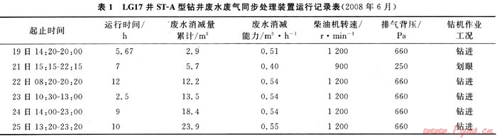 2) 單機(jī)實(shí)測平均消減鉆井廢水0.517m3/h,即平均12.4m3/d(24h),大于目前井場鉆井廢水產(chǎn)生量,可以確保廢水不外排、不外運(yùn)、不累積,進(jìn)行源頭治理。