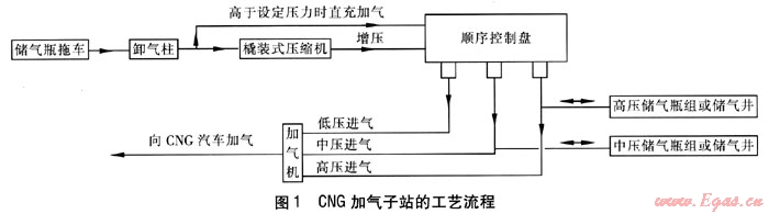 摘要:介紹了CNG加氣子站的工藝流程、各部分工藝及主要設備。