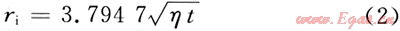 石油工業(yè)中國(guó)際上對(duì)于探測(cè)半徑的定義為:在某一確定的瞬時(shí),給井中施加一個(gè)壓力脈沖,對(duì)該脈沖響應(yīng)達(dá)到最大值的位置就稱為探測(cè)半徑。在標(biāo)準(zhǔn)單位制式下,探測(cè)半徑表示為[1]: