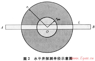 筆者是基于現(xiàn)有油氣井探測(cè)半徑公式主要應(yīng)用于直井并存在諸方面的缺陷而提出的。將水平井滲流問(wèn)題轉(zhuǎn)為擬圓形坑道的虛擬直井滲流問(wèn)題,從而得出油氣藏水平井探測(cè)半徑計(jì)算公式。