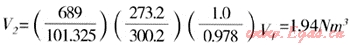 V1=P1和T1時燃氣的體積,(Nm3);