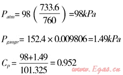 若已知一個低壓系統(tǒng)的壓力=152.4mm水柱,該地離海平面的高程差為304.8m,當?shù)卮髿鈮簽?36.6mmHg,基礎大氣壓為760mmHg。換算系數(shù)1mm水柱=0.009806kPa。