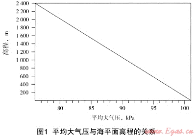 查圖1,得高程為304.8m處的大氣壓為98kPa,則
