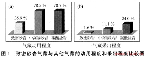 雖然在開發(fā)技術(shù)上取得了成效,但在氣藏的動(dòng)用程度和采出程度方面,致密砂巖氣藏遠(yuǎn)遠(yuǎn)低于中高滲透砂巖氣藏和碳酸鹽巖氣藏(見圖1),處于規(guī)模開發(fā)的早期階段。