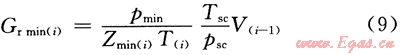 采氣末氣墊氣量計算模型的建立是以上一注氣周期末孔隙體積[V(i-1)]變化為依據(jù)(式7),再利用氣體狀態(tài)方程進一步計算本采氣周期末對應下限壓力時的氣墊氣量[Gr min(i)]。數(shù)學表達式為:
