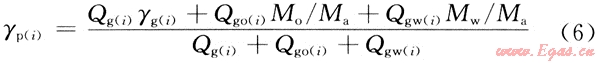 其中采氣階段產(chǎn)出流體相對密度[γp(i)]為: