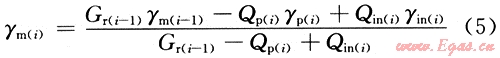 某一注采階段庫內(nèi)混合流體相對密度[γm(i)]的數(shù)學表達式為: