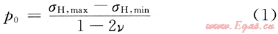 此外,Nolte和Smith研究認為具有微裂縫的儲層壓裂時,當(dāng)縫內(nèi)凈壓力超過天然微裂縫的張開的臨界壓力(p0)時可以實現(xiàn)天然微裂縫的開啟,p0公式為:[1~4]: