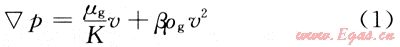 氣體由于易壓縮、易流動的特點使得其在低滲透儲層中的流動易受到壓力和流速的影響表現(xiàn)出非線性的滲流特征[4]。氣體在高速流動時表示為: