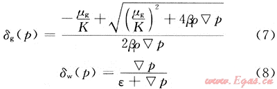 其中氣、水相非線性因子δ的表達式為: