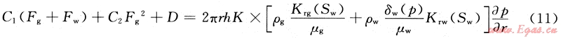 將式(6)、(7)、(8)的非線性形式帶入式(10)可以得到二維徑向流的質(zhì)量流量微分式: