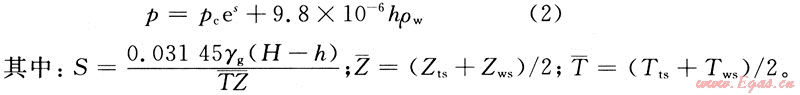 式中:p為井底流動壓力,MPa;pc為套壓,MPa;H為井深,m;h為井底積液高度,m;ρw為地層水密度,kg/m3;γg為天然氣相對密度,無因次;Tts、Tws為靜止氣柱的井口、井底溫度,K。