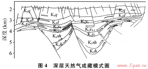 深層發(fā)育34個(gè)相互獨(dú)立的斷陷,天然氣資源量3.92×1012m3,勘探潛力大。天然氣成藏受斷陷規(guī)模、火山巖發(fā)育程度及斷裂與不整合面控制,以下部含氣系統(tǒng)為主;成藏條件好的中小型斷陷將是深層天然氣勘探重要的接替領(lǐng)域。