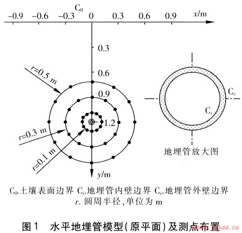 國內(nèi)外對土壤源熱泵的研究主要集中在以下幾個方面:地埋管換熱器傳熱模型,地埋管的敷設(shè)形式及管材,土壤特性對地埋管換熱器傳熱性能的影響,系統(tǒng)的設(shè)計和安裝,回填材料,土壤源熱泵系統(tǒng)的能耗分析及技術(shù)經(jīng)濟評價,帶輔助裝置的混合式土壤源熱泵。這些研究主要涉及土壤與地埋管換熱器的熱交換特性,即地埋管壁及其周圍土壤的溫度場分布[1]。