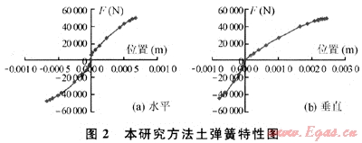 據(jù)此方法建立的土彈簧特性考慮到了管溝的幾何形狀、幾何尺寸及回填土壤的特性等因素影響。