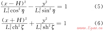 式中:ξ、η為與橢圓族中任意橢圓大小有關的特征量;chξ為雙曲余弦函數(shù);shξ為雙曲正弦函數(shù)。