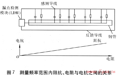 感測導(dǎo)線用于測量阻抗,且與反饋導(dǎo)線形成回路,因此感測導(dǎo)線與反饋導(dǎo)線必須在被測管段的末端連接在一起形成一個(gè)回路。這樣,漏點(diǎn)檢測系統(tǒng)通過檢測感測導(dǎo)線與反饋導(dǎo)線之間的電阻,以及感測導(dǎo)線與管道之間的阻抗判斷管道是否泄漏,依此監(jiān)測管道和保溫層之間的濕度,經(jīng)軟件處理確定泄漏度和漏點(diǎn)位置。