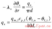 式中θf,o、θf,i——地埋管換熱器出口、進(jìn)口流體溫度,℃