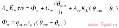 平板型太陽(yáng)能集熱器吸熱板內(nèi)的流體(乙二醇水溶液)與太陽(yáng)輻射進(jìn)行能量交換,其性能可用能量平衡方程描述: