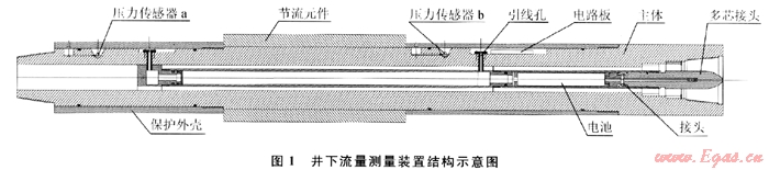 該測(cè)量裝置內(nèi)置壓力傳感器和數(shù)據(jù)采集卡,并通過(guò)多芯接頭與隨鉆測(cè)井(MWD)裝置連接??蓪?shí)時(shí)采集壓力傳感器的信號(hào)并進(jìn)行簡(jiǎn)單處理,之后把采集的壓力數(shù)據(jù)通過(guò)MWD傳至地面進(jìn)行分析,即可得到井底實(shí)時(shí)的環(huán)空流速(流量)。