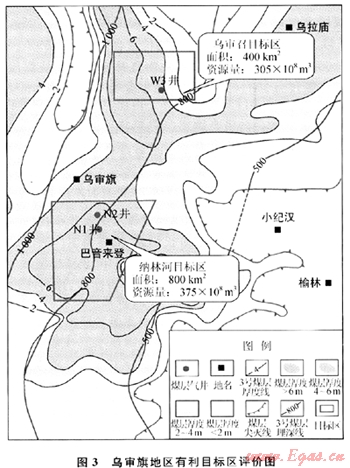 3) 北部的烏審召區(qū)塊和南部的納林河區(qū)塊,煤層氣保存條件好,含氣量高,勘探潛力大,可作為下一步煤層氣勘探有利目標(biāo)區(qū)。