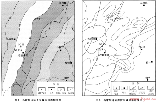 烏審旗地區(qū)煤炭資源豐富,煤層氣勘探潛力巨大。近年來,研究人員通過分析研究天然氣鉆井、煤炭鉆孔及煤巖分析資料以及地震測線解釋,發(fā)現(xiàn)該區(qū)煤層厚度大、分布廣,具有良好的煤層氣成藏條件。目前該區(qū)已鉆煤層氣井15口,煤層含氣性變化較大,因此,進(jìn)一