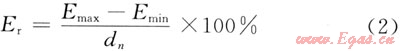 式中Emax和Emin分別為規(guī)定流量下,測(cè)量示值相對(duì)誤差的最大值和最小值;dn為極差系數(shù)(當(dāng)測(cè)量次數(shù)n=3時(shí),dn=1.69)。